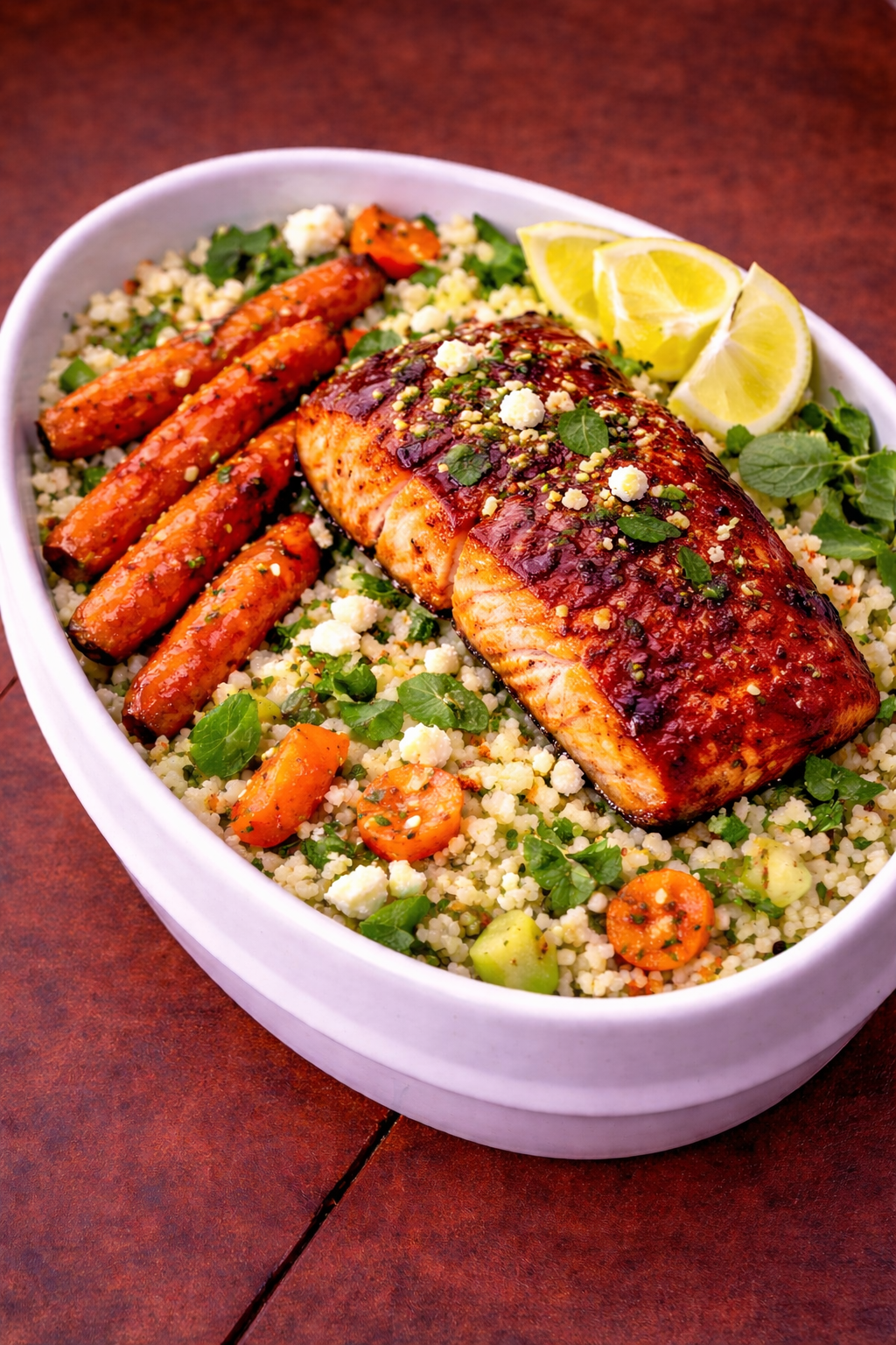 Harissa Honey Salmon with Roasted Carrots – Pescatarian