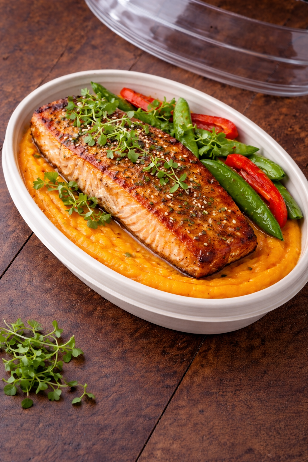 Lemongrass Ginger Salmon w/ Coconut Carrot Purée- Pescatarian